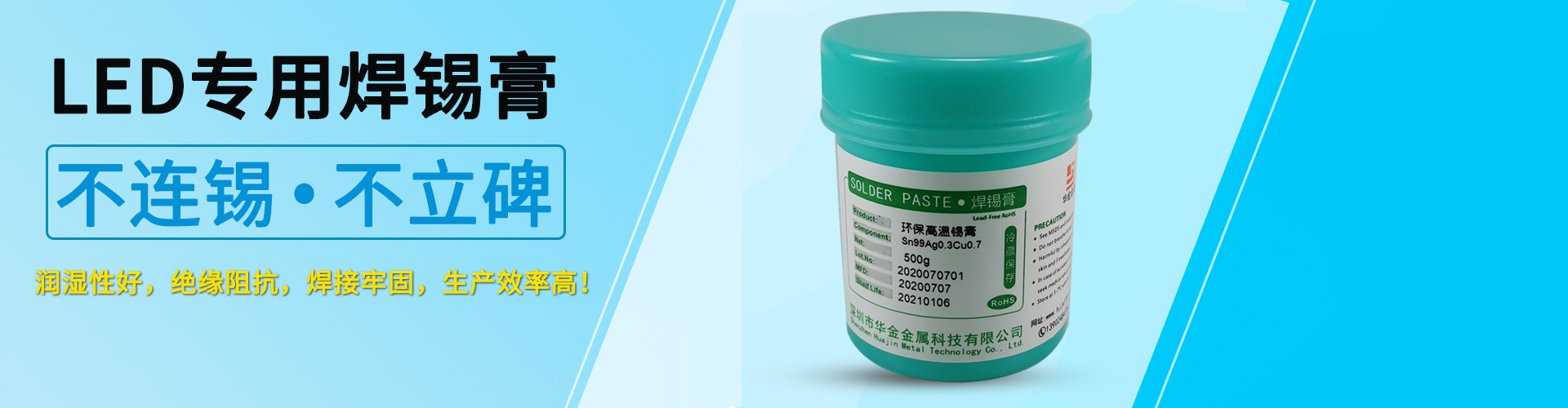 華金錫業有限公司一家資深的專業焊錫制品生產廠家,多年專注焊錫制品生產加工。產品有無鉛錫絲.無鉛錫條.錫板.錫膏.錫珠等.公司憑借多年的經驗和不斷的科技創新.生產的產品各項技術性能均達到國家標準.歐盟標準。并獲得眾多使用廠家的肯定.為適應環保要求.本公司2003年巨資投入生產無鉛焊錫,多年來連續通過SGS環保認證.產品規格齊全,使用性能極佳??蛻羧后w遍布全國各地及國外用戶。華金錫業焊錫制品是選用一線品牌作為原材料,采用選進的配方,精工制作各種規格不同的型號,再采用全自動流水線作業擠拉成各種符合要求的焊錫絲和焊錫條。華金牌焊錫制品以其一流的品質,真誠的服務,產品銷往全國各地,深受廣大用戶的高度贊揚。